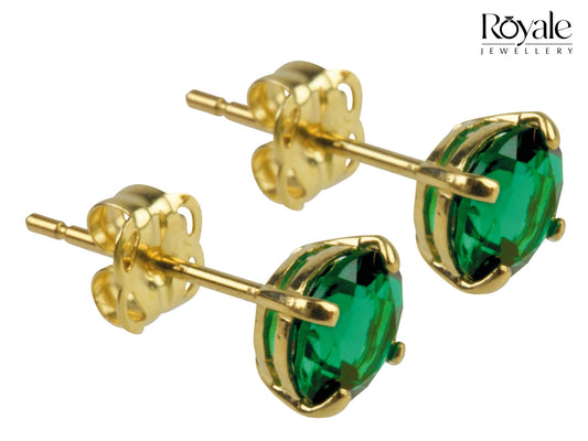 9ct Yellow Gold Emerald Earrings