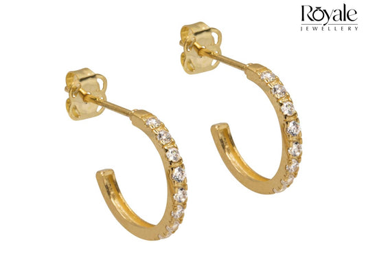 9ct Yellow Gold Crescent and Cubic Zirconia Earrings
