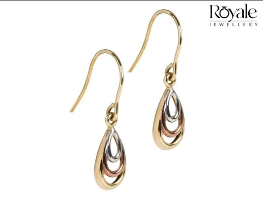 9ct Tri Gold Teardrop Earrings