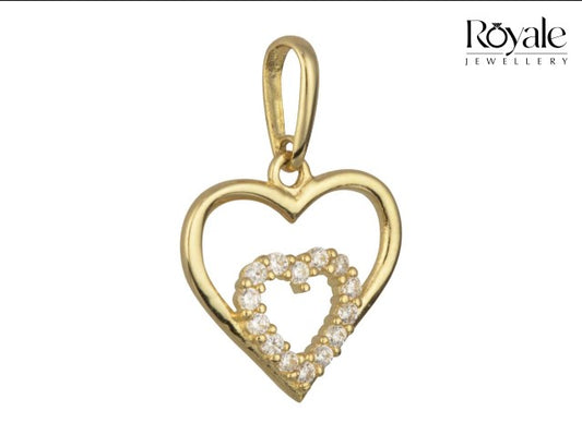 9ct Coupled Golden Heart with Cubic Zirconia Pendant